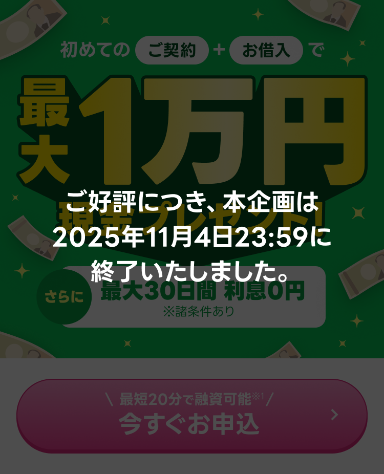 ※1 お申込の時間帯によりご希望に添えない場合がございます。手続き内容や混雑状況によって審査にお時間を頂く場合があります。※2 本企画は2025年11月4日23:59に終了いたします。