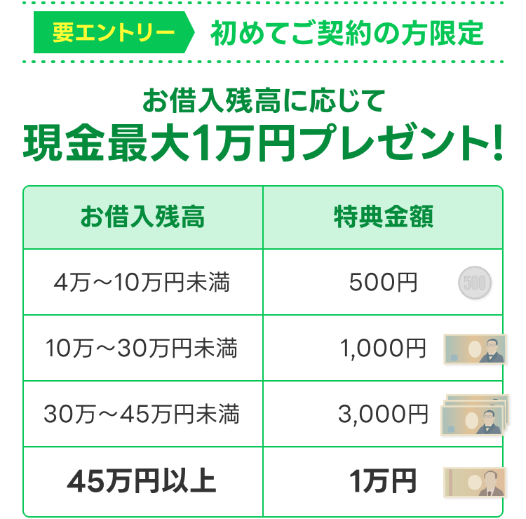 ・借入45万円以上 → 特典1万円