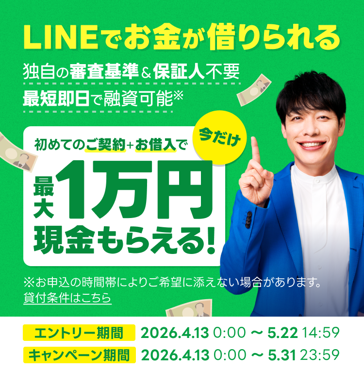 ・特典付与時点で、延滞、期限の利益を喪失されている場合、またはその他ご契約状態によりLINEポケットマネーをご利用いただけない場合、対象外になります。