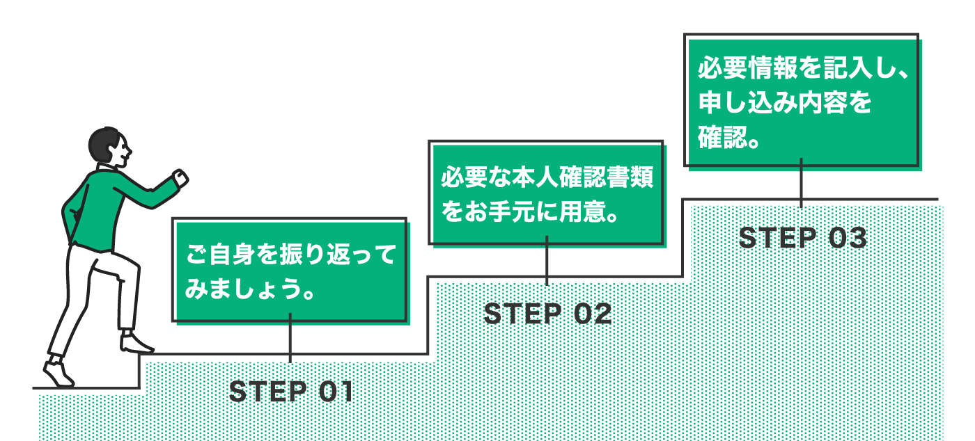 以下では、申込前にクリアしておきたいポイントを3つのステップで解説していきます。