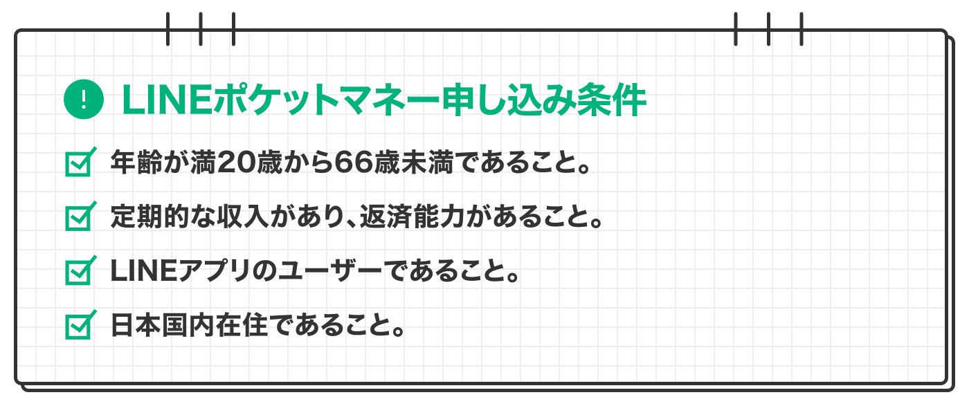 また、LINEポケットマネーの申込にあたっては、以下のような条件もあります。