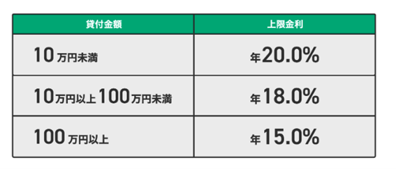 キャッシングの金利の上限は20.0%。ただし金額によって異なる