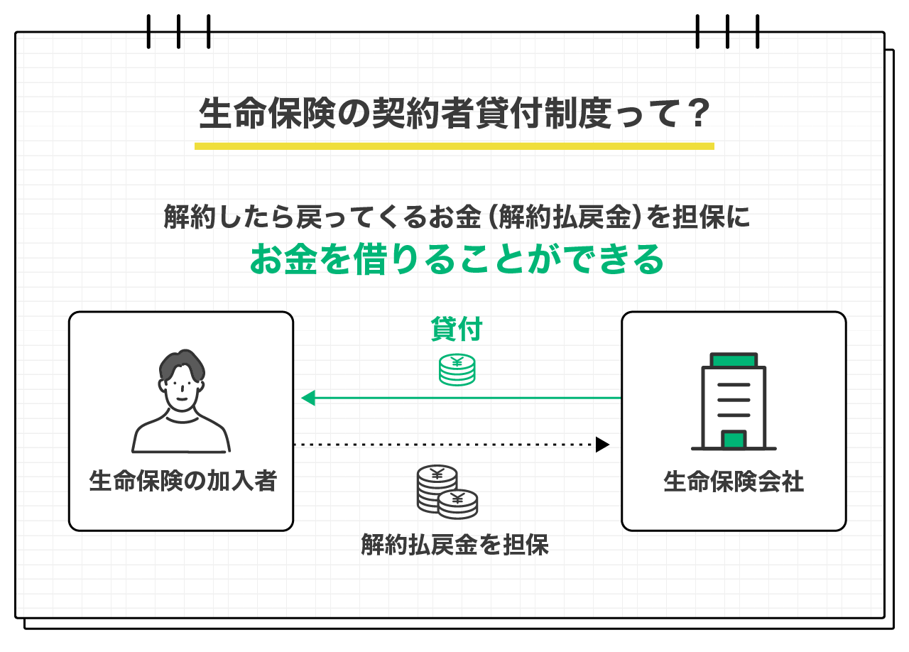 解約した際に「解約返戻金」が受け取れる、積立型などの生命保険に加入している場合、その返戻金を担保に保険会社からお金を借りられる「契約者貸付制度」を利用できます。これは保険契約者本人の権利であるため、新たな審査は不要です。