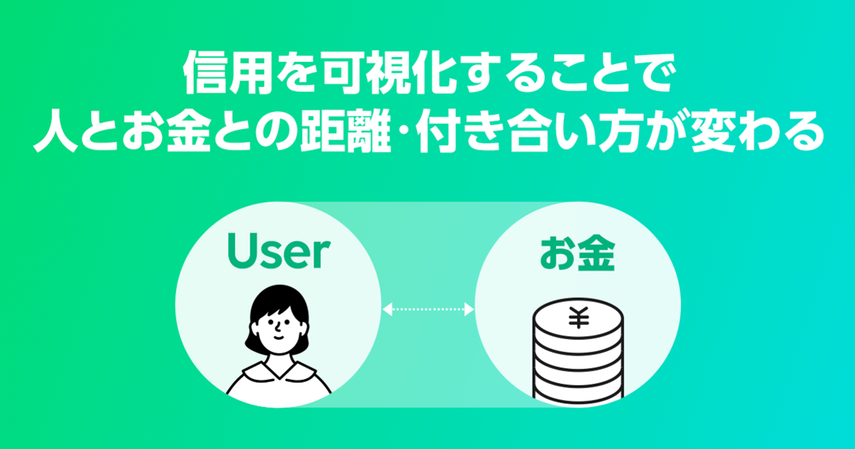 私たちは、この仕組みによって「信用を可視化」することにより、人とお金との関係が変化していくと考えています。