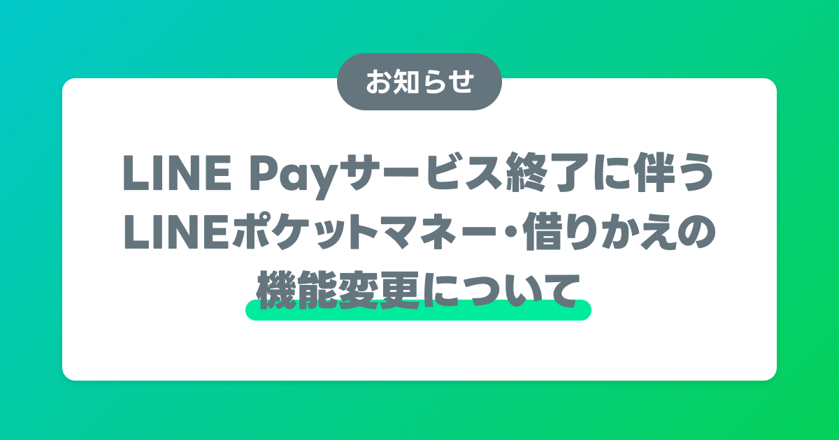 本ページでは、この度のLINE Payサービス提供終了に伴う、今後のLINEポケットマネーおよびLINEポケットマネー借りかえの機能変更、スケジュールについて詳細に説明します。