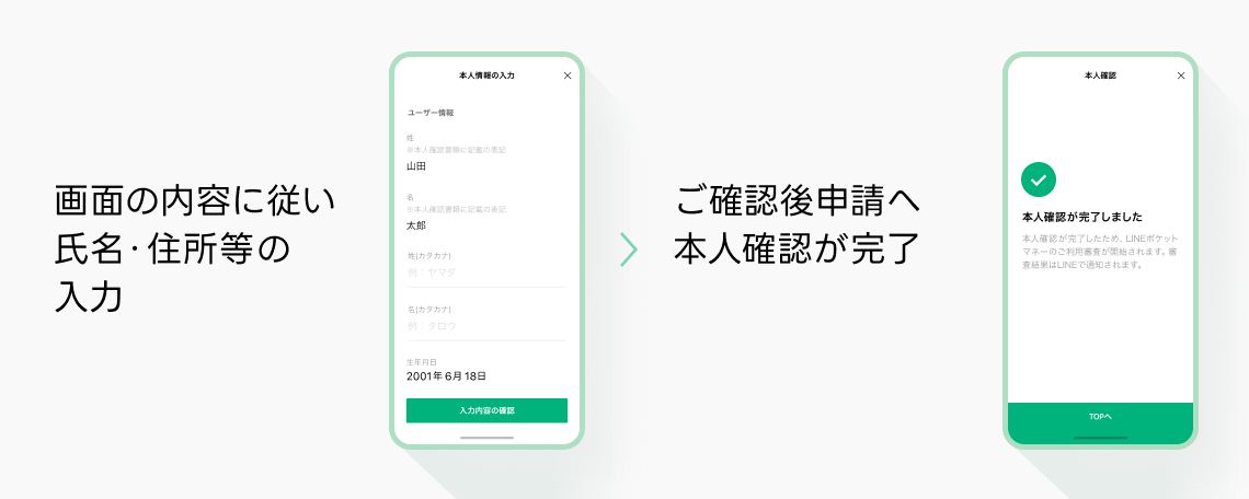 ※STEP2で本人確認書類の提出後、弊社での確認が完了しますと、LINEポケットマネーでは「LINE Payパスワード」をご利用いただけなくなります。以後お取引の際は新しく作成したLINEポケットマネー専用のパスコードをご利用ください。