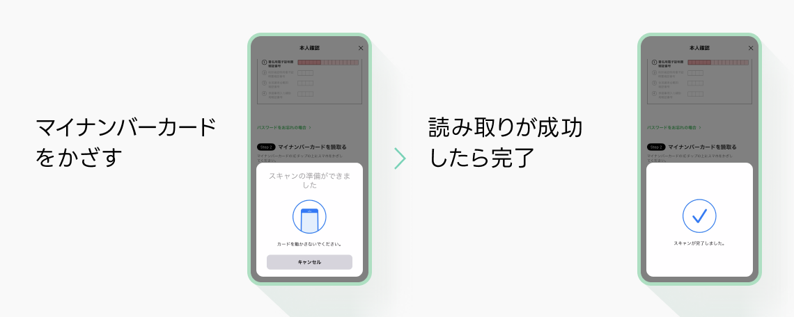 最短3分で完了する「マイナンバーカードをかざして本人確認」がおすすめです。