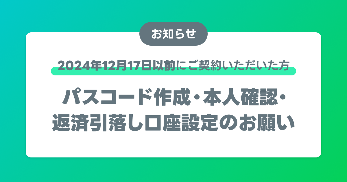 【2024年12月17日以前にご契約いただいた方】パスコード作成・本人確認・返済引落し口座設定のお願い