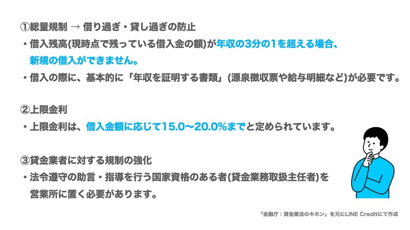 このように、利用者の借り過ぎ、事業者による貸し過ぎを防止する仕組みが定められているのです。