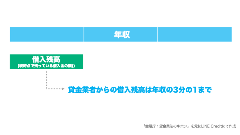 具体的には、「貸金業者から借入れる金額は、年収の3分の1まで」と定められています。