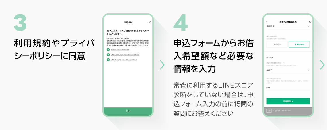 ・申込が完了し、審査中の画面に切り替わった後、専用LINEアカウントより審査結果をご案内